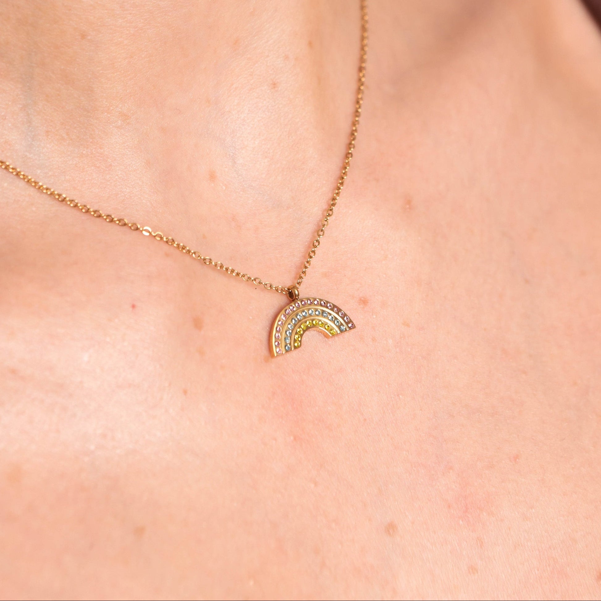 Add a little sparkle to your every day. The Sparkly Rainbow Necklace is your daily reminder that hope and happiness still shine through the clouds. Whether you’re drawn to the timeless crystal tones or the soft pastel hues, this necklace catches the light - and a few hearts too.